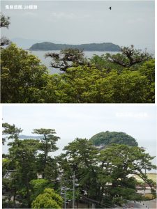 駐車場からは数分の登りですが、海に近く、さらに周りに高い場所がないため景色は素晴らしく、三河湾に浮かぶ三河大島が良く見えます。