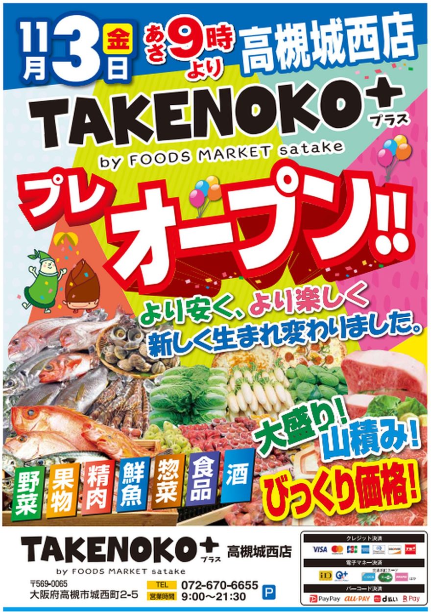 ・2023年11月3日改装TAKENOKO +高槻城西店(大阪府高槻市)
