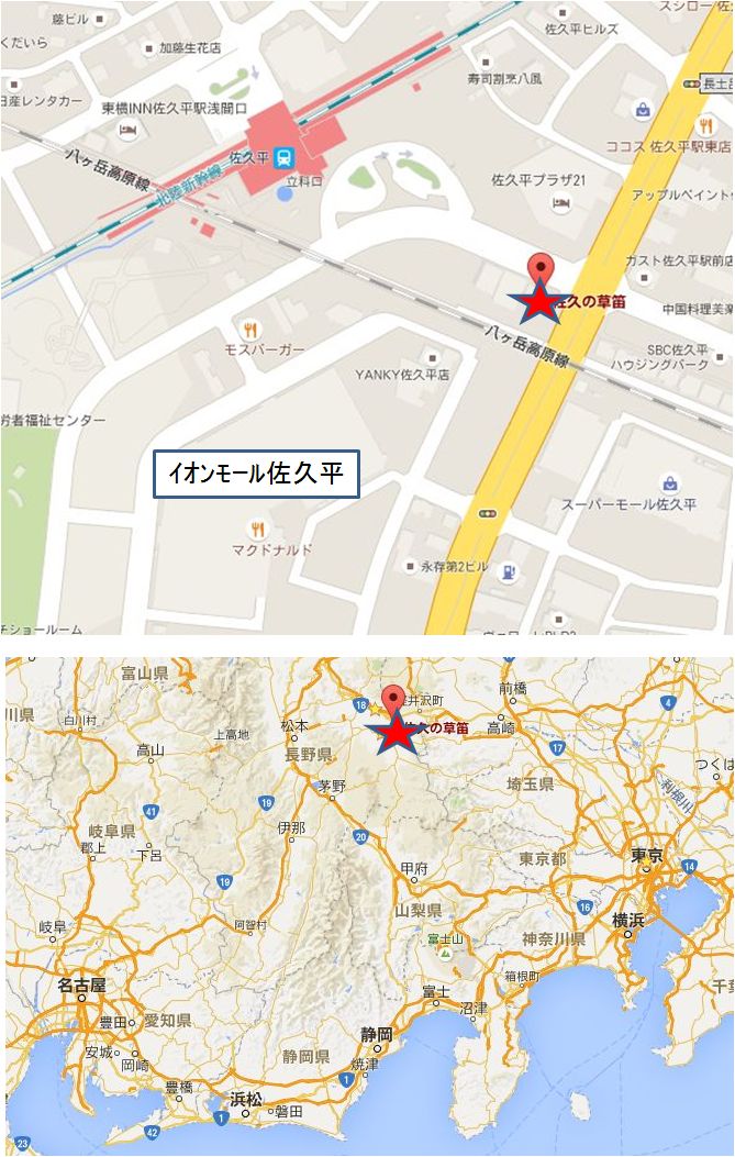 草笛は長野県に6店(小諸本店,遊子亭,草笛明日香,長野店,上田店,佐久の草笛)。