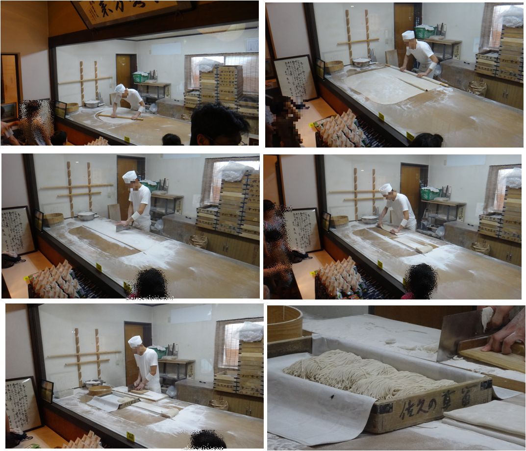 待合室で待っている間に作業場の大きなガラス越しに蕎麦打ちを最初から最後まで眺めることができます。これは楽しい。良い物を見せていただきました。