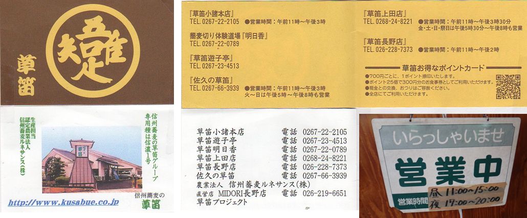 草笛は長野県に6店(小諸本店,遊子亭,草笛明日香,長野店,上田店,佐久の草笛)。