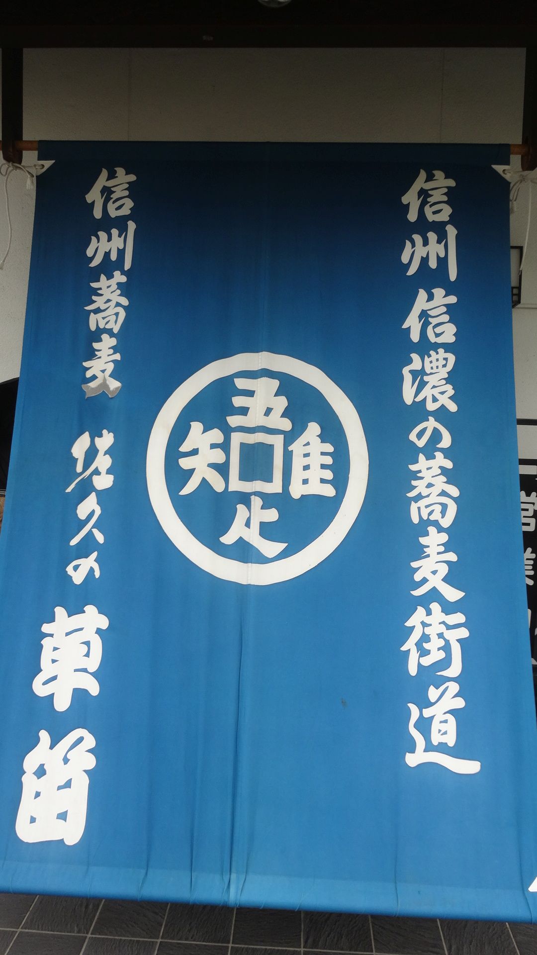 暖簾は「知足の蹲踞(ちそくのつくばい)」を模したもの。本物は京都龍安寺方丈、茶室蔵六庵の前で見たことがあります。
