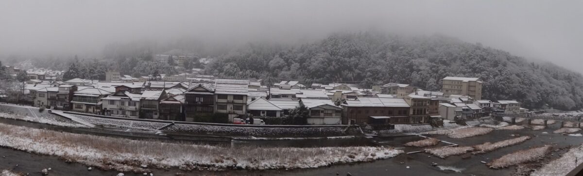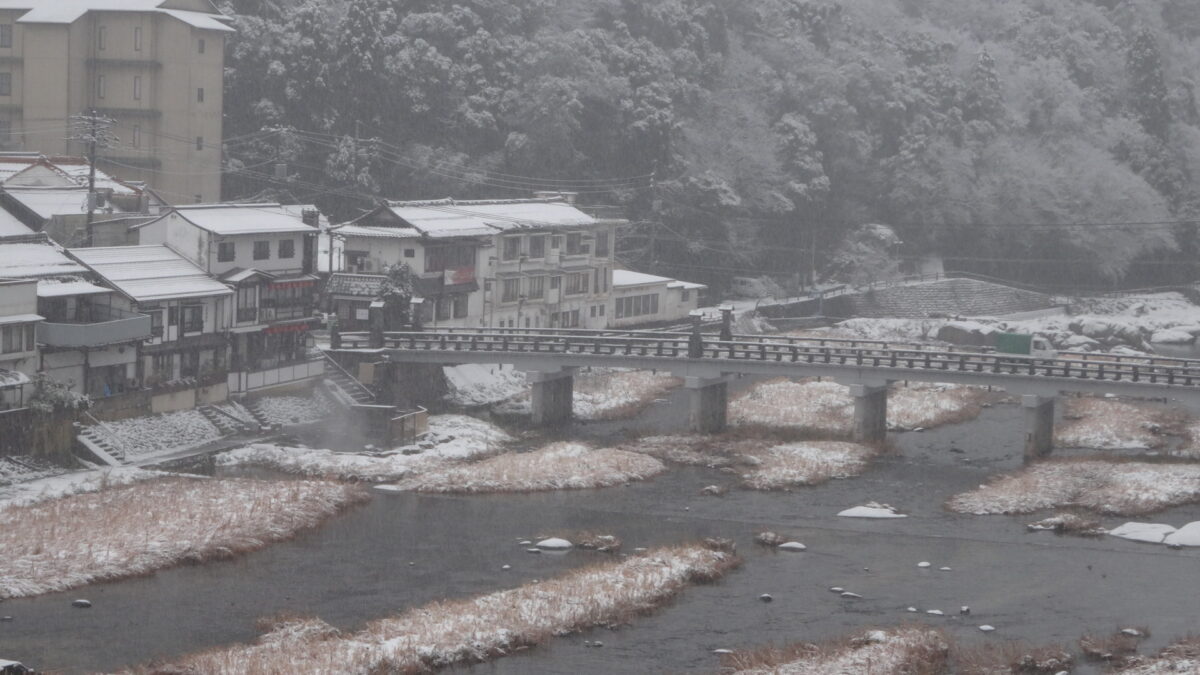 雪の三朝温泉(みささおんせん:鳥取県)依山楼岩崎でラジウム温泉に浸かる,三徳山三佛寺投入堂,モサエビ,北条ワイン