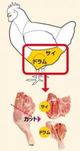 ・鶏モモ肉の上部(下部は“ドラム”)。四角い形に整形しやすいため商品の見栄えもよく、ふんわりとした食感でジューシーさが特徴。