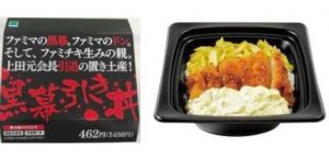 ~ジューシーな「ファミチキ」と、手作りのタルタルソースと の 夢のコラボに「悔しいが、うまい(現社長: 澤田談)」と、上田の底力を感じさせる逸品に仕上がりました。ファミマの“黒幕”であり、“ドン”であり続けた上田をイメージする真っ黒なパッケージで“丼”を 覆い 、売場での異質の存在感を演出してまいります~(ニュースリリースより)