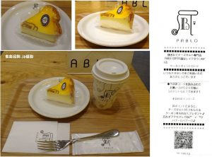 ウリであるチーズタルトをいただくために列に並んでメニューを眺める。「イートイン店舗限定メニュー」を発見。イートイン限定のカットサイズ。これはありがたい。持ち帰るには埼玉から愛知県は遠すぎる。ここで食べ切るにはありがたいサイズです。