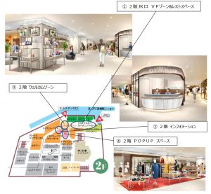 ・ 高崎駅西口から繋がる デッキ と接続 する 「 2 階 テラスデッキとウェルカムゾーン 」 (※ デッキは 今秋開通予定)