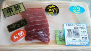 とはいえかなり身やけ気味の青森県産天然生ほんまぐろが尾鷲のお土産店にならんでいるのか不明。