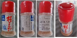 ・桜えびと岩塩をブレンド。原材料表示は「原材料:桜えび(駿河湾産)、岩塩」とシンプルです。