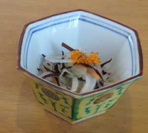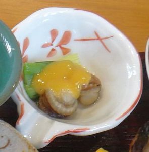 最初、見たときはベビーホタテだと思ったのですが、配膳の方が「イタヤ貝」と紹介してくれました。こうやって料理の説明をしていただけるのは大変、ありがたいです。