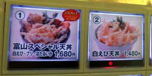 何故、驚いたこというと、以前、JR富山駅で「白えび亭」を見かけたが、電車の時間に間に合わなくて実食を見送ったことがあったのです。それが、東京で出会えるという幸運。