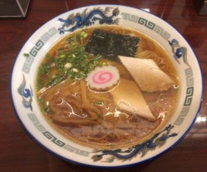 チャーシュー・メンマ・海苔・ナルト・薬味ネギがトッピングされたルックスは「昔ながらの」という表現ながら、スープが独特というか、非常に面白い味に仕上がっている。ただの醤油スープではない。鶏ベースだが、魚介だしに加えて動物系のコッテリ感もある。