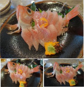 これだけでは少し寂しいので単品の刺身も頼むことに。沖メバルです。スズキ目カサゴ亜目メバル科メバル属で本名は「薄目張(ウスメバル)」。