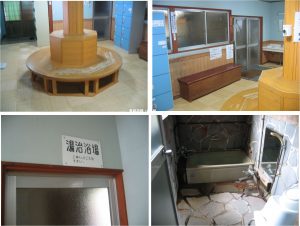 ↓ 現在の内風呂と露天風呂、内装と売場(2018年)
