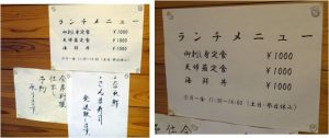 平日ランチは1,000円から刺身定食、天婦羅定食、海鮮丼の3種が提供されているらしいが、当日は土曜日で平日ランチは無い。それではと言うことで、せっかくなのでレギュラーメニューを注文。