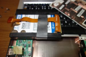 新しいSSDの向きに注意してケーブルを挿し直す。そしてノートパソコンにセット。