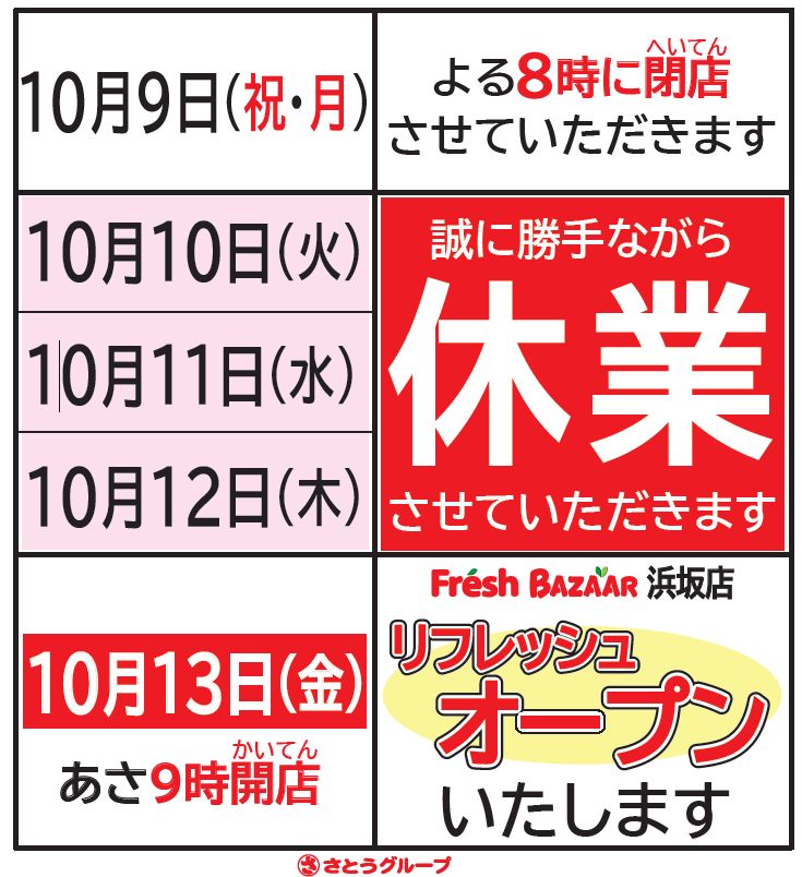 ・10/10~10/12改装休業