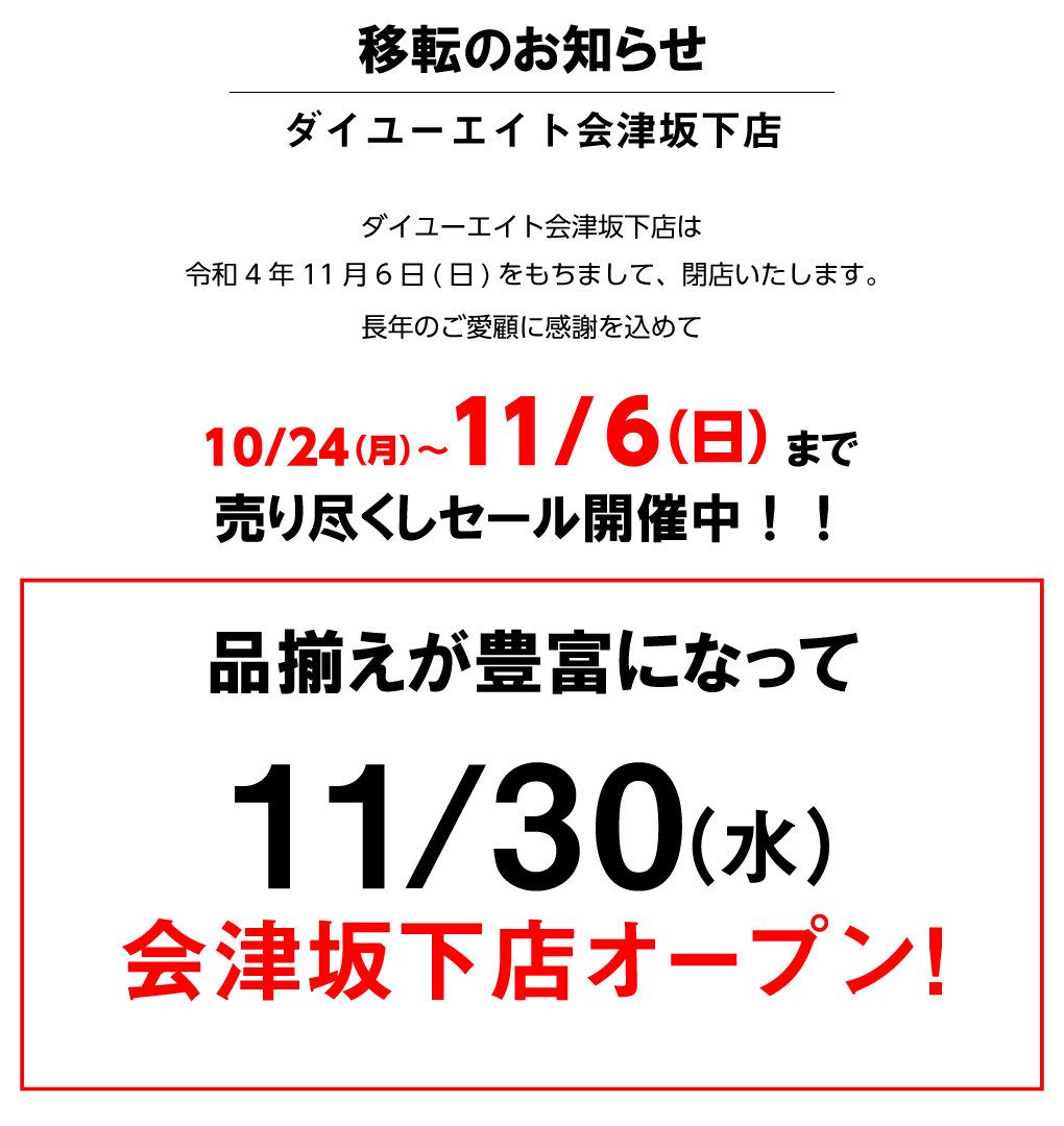 ・11/30移転ダイユーエイト会津坂下店(福島県河沼郡)