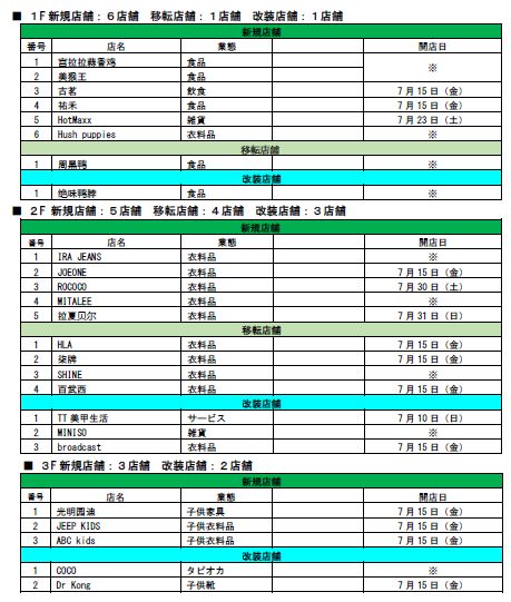 改装開店日2021/07/16
