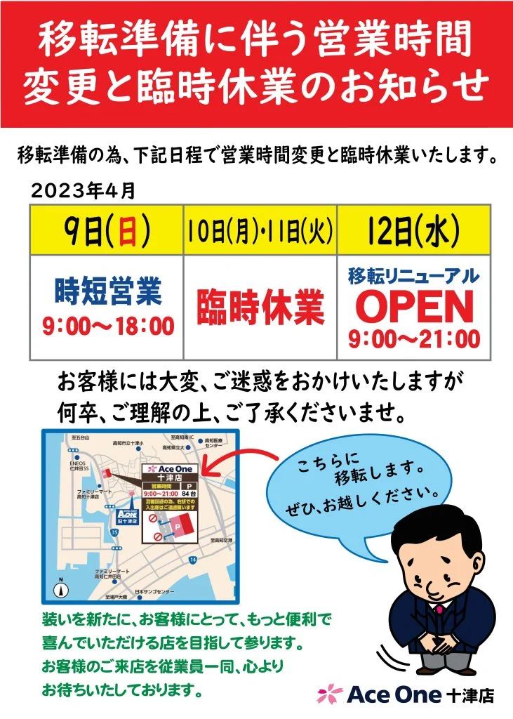 ・<3/23予定>エースワン十津店(高知市)