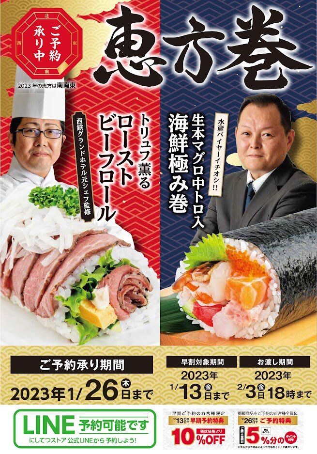 もともとの作法である「丸かぶり」をすることができないじゃないかと思えるような豪華で大きな寿司が増えていく企業もあれば、かたくなに丸かぶりのサイズ感を意識して毎年、ちょっとした進化を付け加えて取り組む企業もある。
