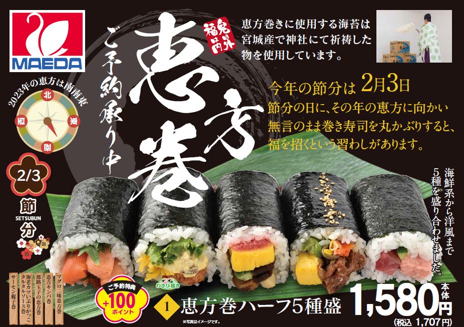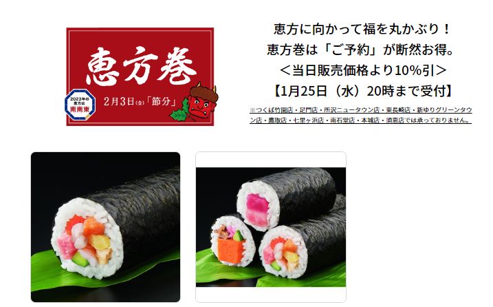 ↓ 2023年恵方は南南東。食彩品館.jpグッド広告賞受賞候補