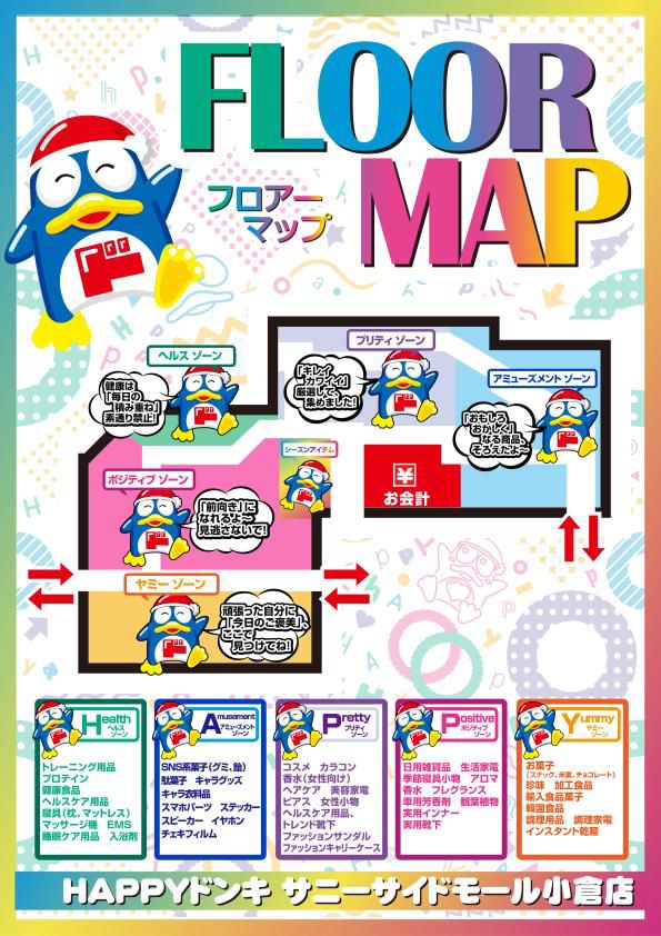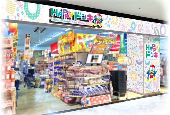 ~既存のドン・キホーテでは商品カテゴリーごとに売場が分かれています。HAPPYドンキは商品カテゴリーごとではなく、H(ヘルス)、A(アミューズメント)、P(プリティ)、P(ポジティブ)、Y(ヤミー(おいしい))というテーマごとに5 つのゾーンに区切ったドンキ初の売場構成の店舗~