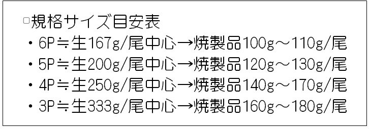 同サイズとしての実食体験は炭火職人うなみ(西尾市)で、その店では「3.5P(1kgに約3.5本≠約285g/本平均)」と表示されていた。※(1kgに約3.5本≠約285g/本平均)