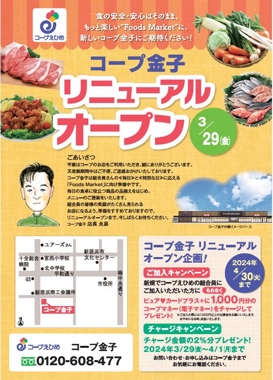 ・<3/30予定>コープ金子店(コープえひめ,愛媛県新居浜市)