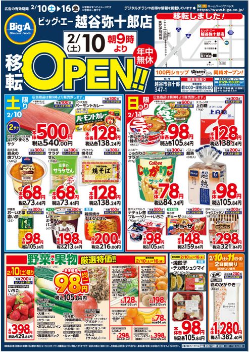 ・2/10移転ビッグ・エー越谷弥十郎店(埼玉県越谷市)
