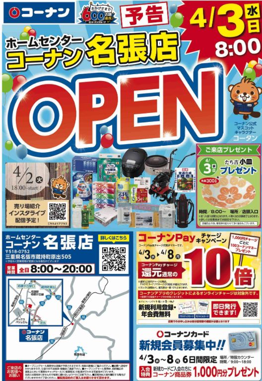 ・4/3コーナン名張店(三重県名張市)
