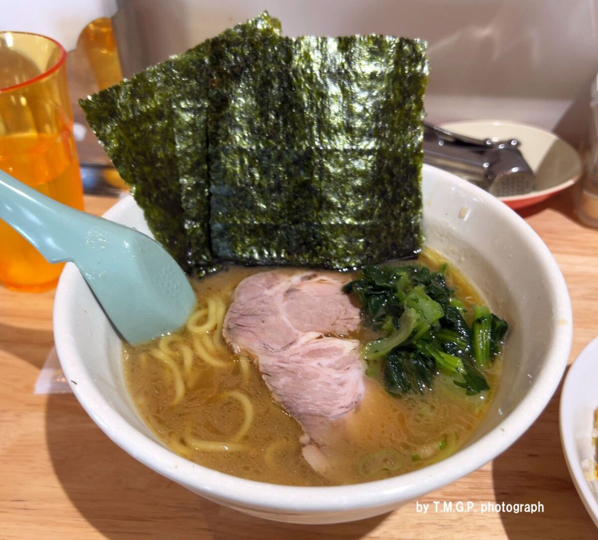 なんとなく、中華料理系出身(私の勝手な推測です)のシェフが家系ラーメン(or横浜家系ラーメン)を模倣しようとしたが、出来上がりの味と直焚き豚骨では時間のかかる手間工数に自分なりの課題を見つけて、ルックスだけは家系のままで、味は独自のものに仕上げたのだろうか。