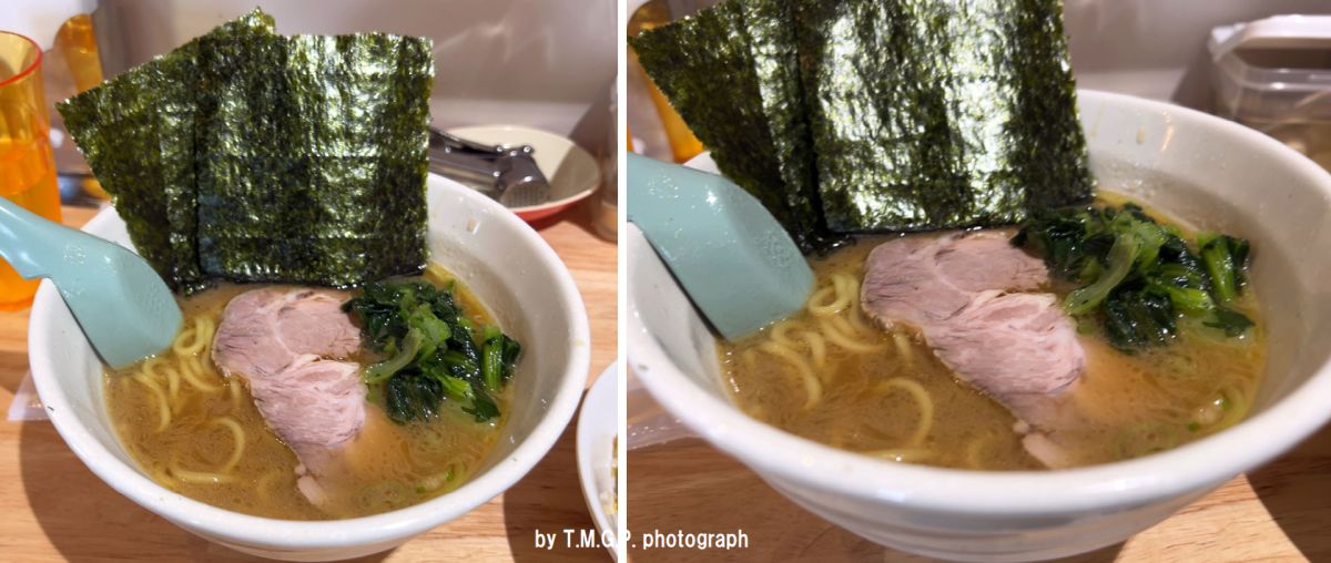 家系といえば豚骨臭(最近のアウトソーシング家系は臭が少ないが)と時間経過とともに乳化・酸化が進み、食べ始めに感じる酸っぱさが特徴で、「濃い豚骨スープに強い醤油ダレと鶏油の混合味」。