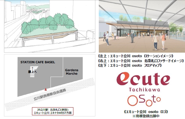 エキュート立川osoto(新自由通路に面する独立店舗棟)8月4日オープン。STATION CAFE BASEL,Gardens Marche。エキナカ側のエキュート立川 3 階フロアもリニューアル