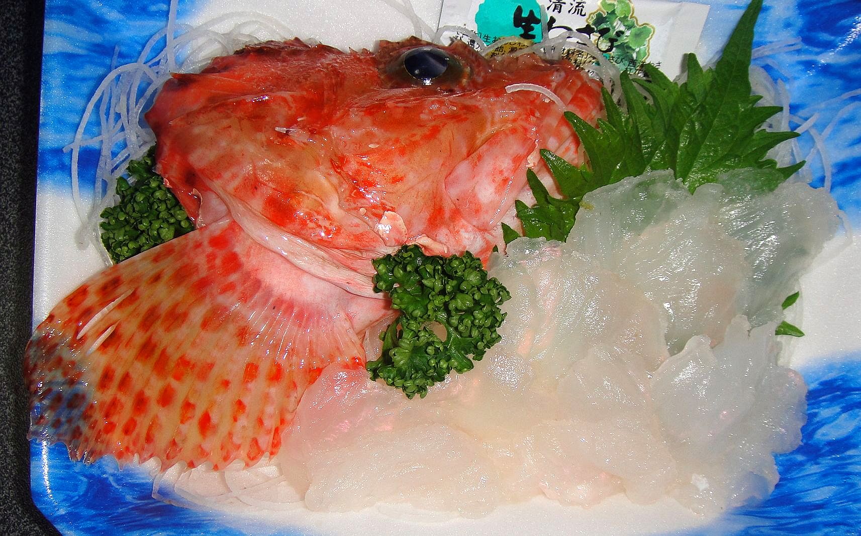 続いて選んだのが、おこぜの刺身。顔つきからして結構なサイズのものと推測。