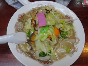 ちゃんぽん屋(愛知県常滑市)具沢山のちゃんぽん麺。基本の具の他にアサリとハンペン入