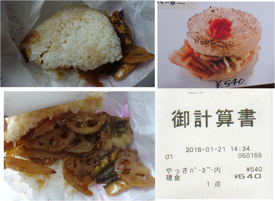 ↓ やっさバーガー540円。穴子入り