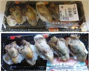 ↓ 万両寿司の牡蠣寿司。原材料原産地不詳。