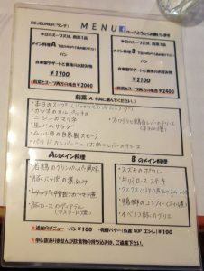 同行4人の感想は「テープルワインでも結構、美味しい。味も満足。何にしてもこの価格でいっぱしのコース料理が食べられることが嬉しい」。