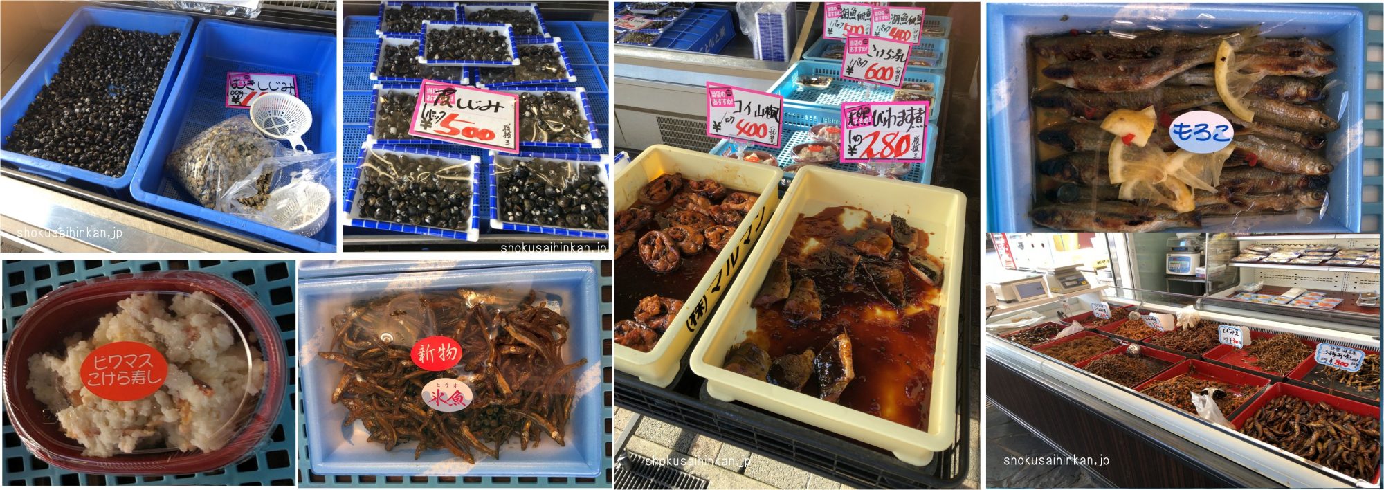 「自ら魚をとり、自ら加工して、その日に発送」とホームページで紹介されている通り、店には新鮮な湖魚の加工品が並ぶ。