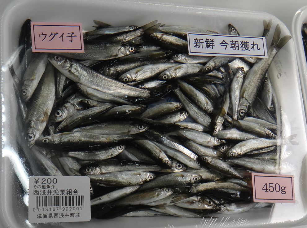 通常は琵琶湖の鮎を「アユ」と称し、それよりも少し小さめで氷魚よりも大きいアユを「子鮎」と表示して販売。