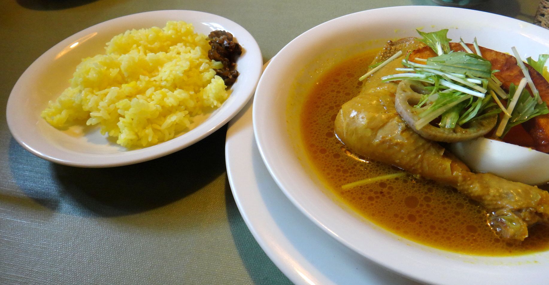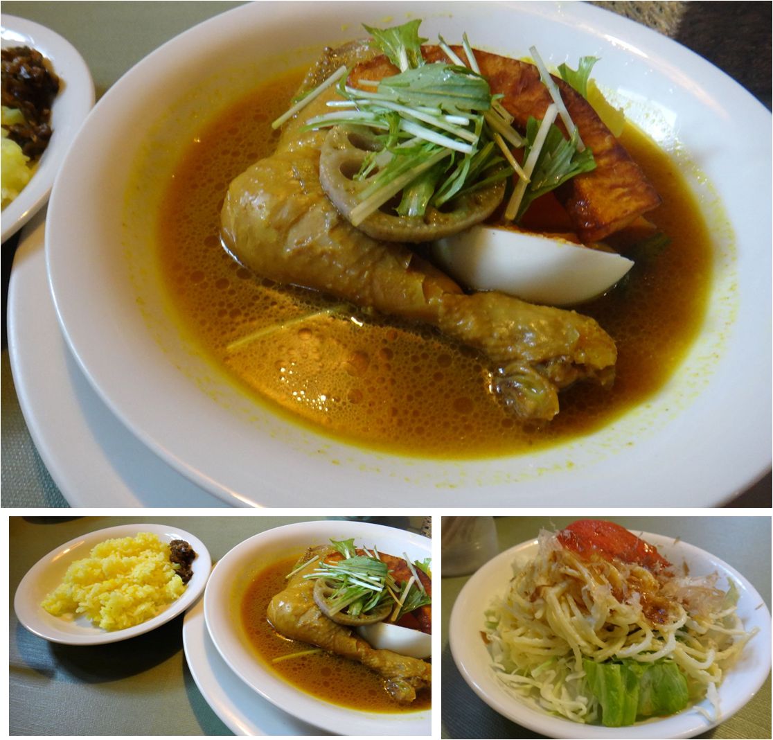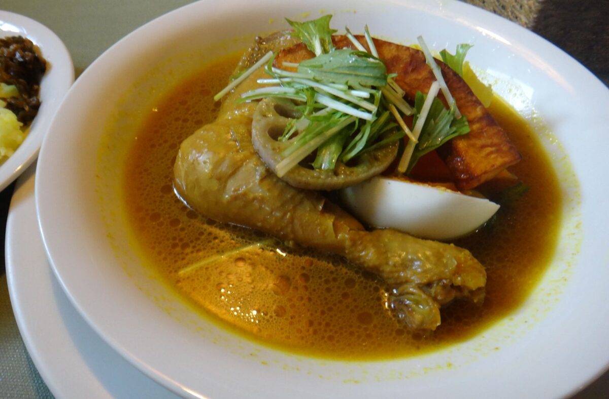 私はチキンを、同行者はハンバーグスープカレーをセットでオーダー。