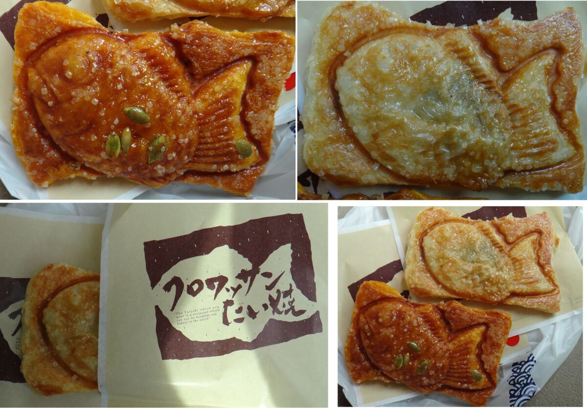 作業を見ているとバックの厨房にクロワッサン生地が見えました。店頭でクロワッサン生地に餡を入れ、そして両面鯛焼き機で次々と焼いています。普通の鯛焼きとの違いは生地を鯛焼き機に流して焼いてから餡を乗せるのではなく、最初からクロワッサン生地に餡を入れて用意しておき、それを鯛焼き機に乗せて両面をサンドイッチにして焼いています。