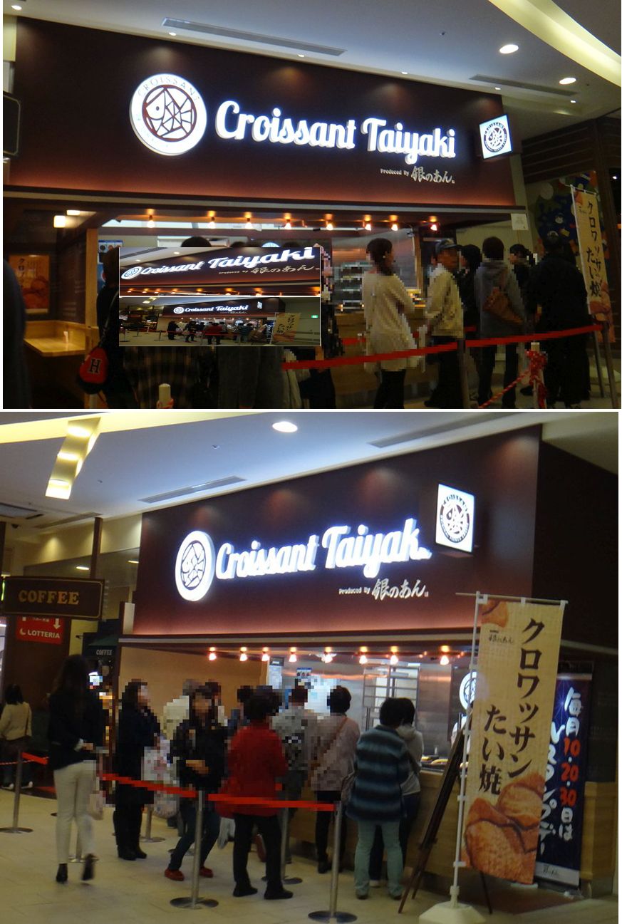 そりゃそうです。築地銀ダコの「株ホットランド」が関東~仙台にかけて10店ほどしかやっていない(と記憶している)クロワッサンたい焼き。中部以西は初出店。