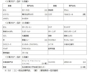 (飲食 : 8 店、物販 : 3 店、サービス: 9 店、 ATM : 1 店)
