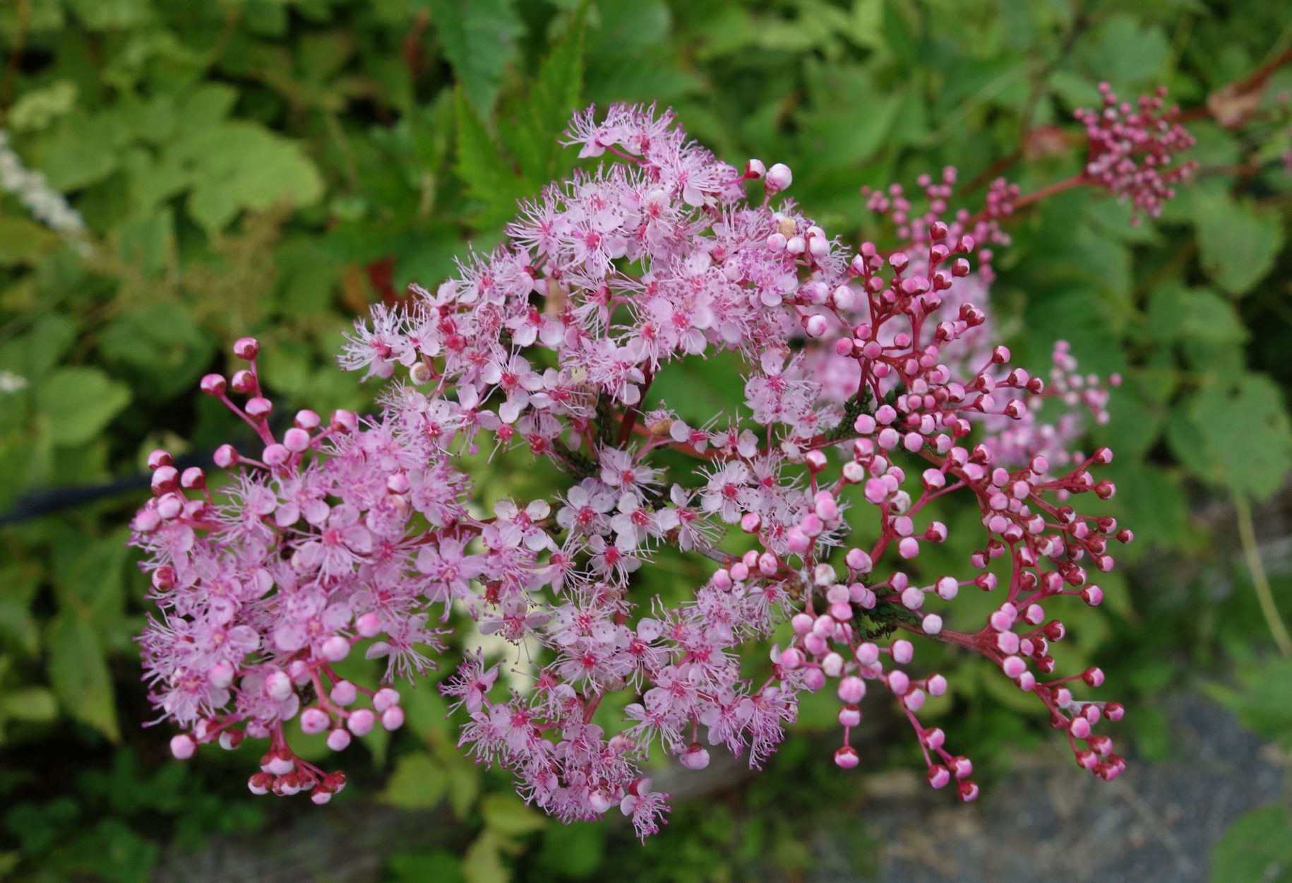 白馬五竜高山植物園の展望リフト周辺の景色と植物。2016年白馬五竜高山植物園(長野県白馬村)の夏【その1】・アカバナシモツケソウ ・オトギリソウ ・クガイソウ ・ヒオウギアヤメ ・コオニユリ ・ササユリ ・マツムシソウ ・アジサイ ・エゾアジサイ ・オオイタドリ ・オダマキ ・シシウド ・ミヤマトウキ ・カライトソウ ・アザミ ・オオバギボウシ ・タテヤマウツボグサ ・ヨツバヒヨドリ ・ニッコウキスゲ