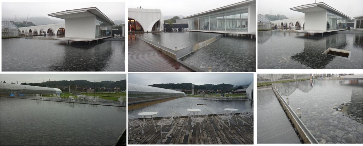 畑の中にあります。周囲はリゾート感全くなし。派手なルックスもなく、水が主役のシンプルな庭。