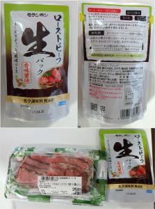 バラのローストビーフ。白が目立つが、赤身とのバランスが良いともう少し訴求力があるかなと思う。