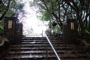 南国紀州らしい植物を眺めながら少し歩くと記念館直下の階段に到着。
