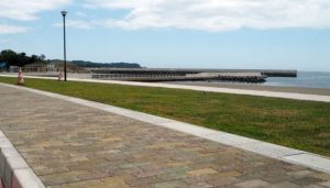 ・砂浜の上には遊歩道や芝生が整備され、東屋、シャワー棟、トイレ棟も設置